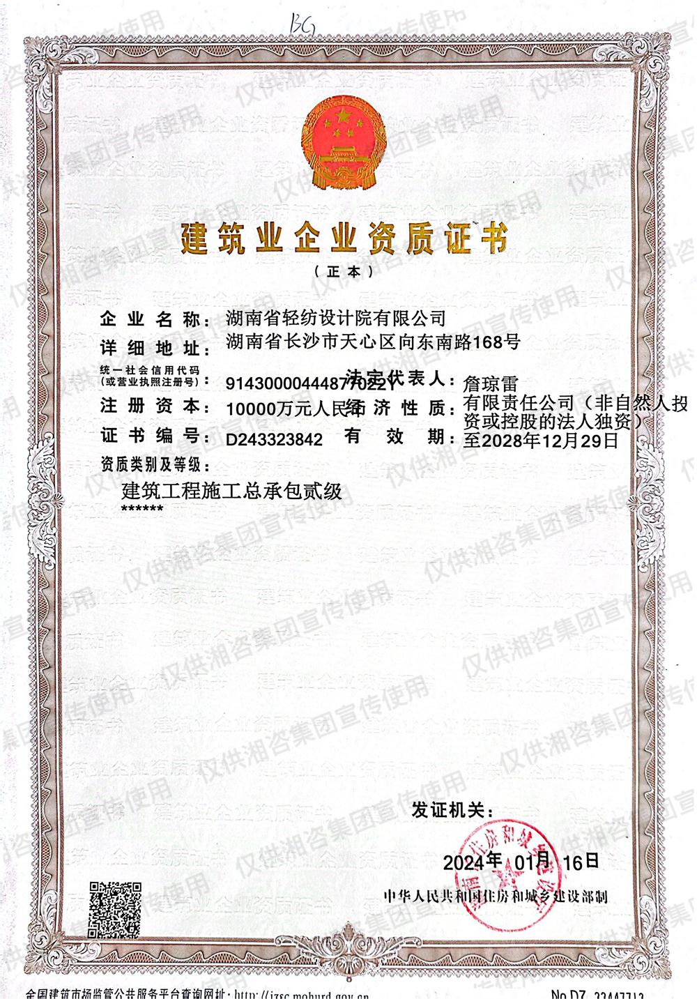 建筑業(yè)企業(yè)資質(zhì)證書-貳級