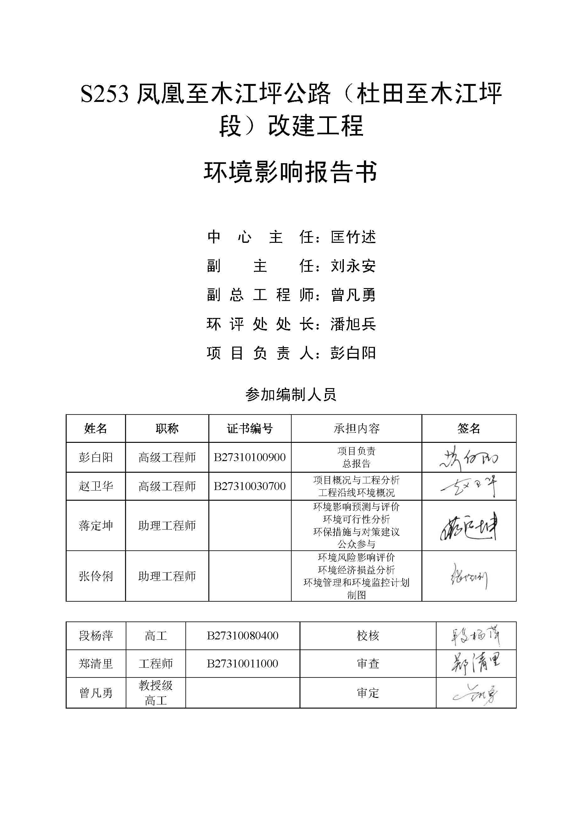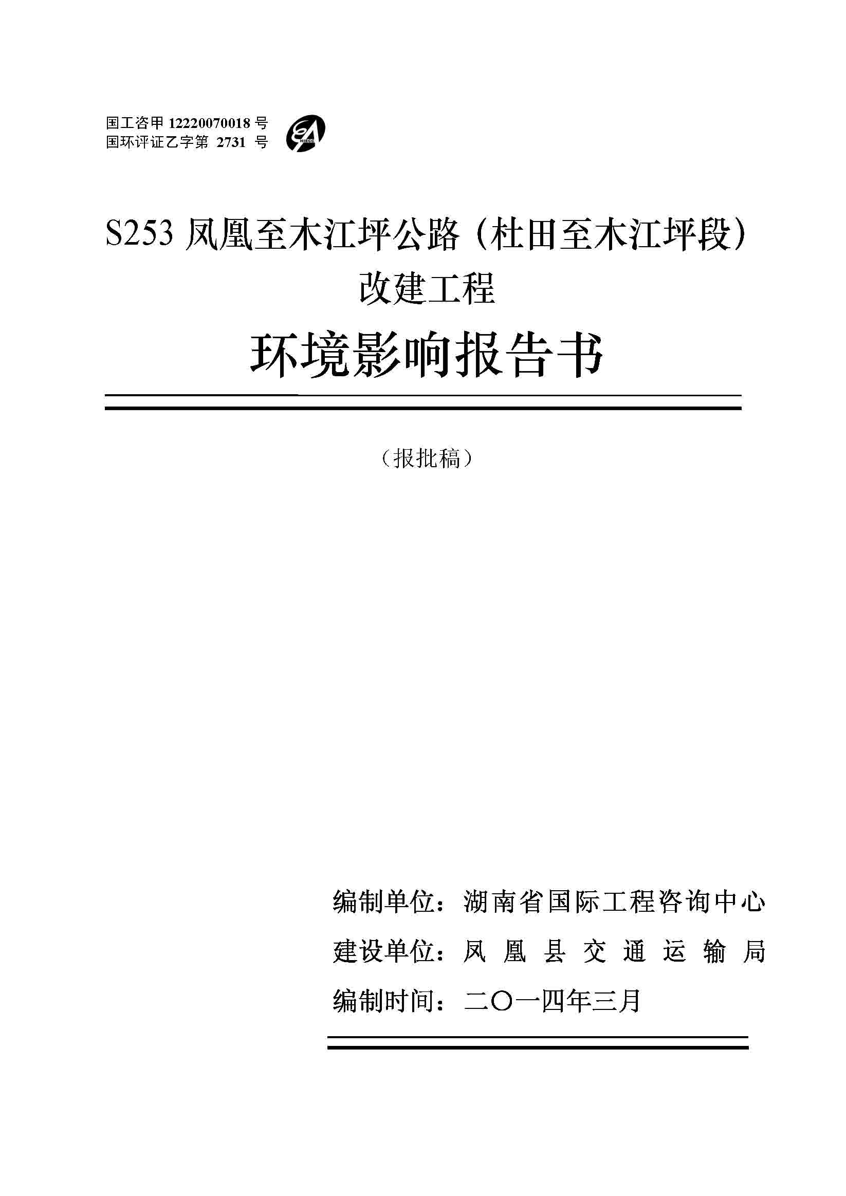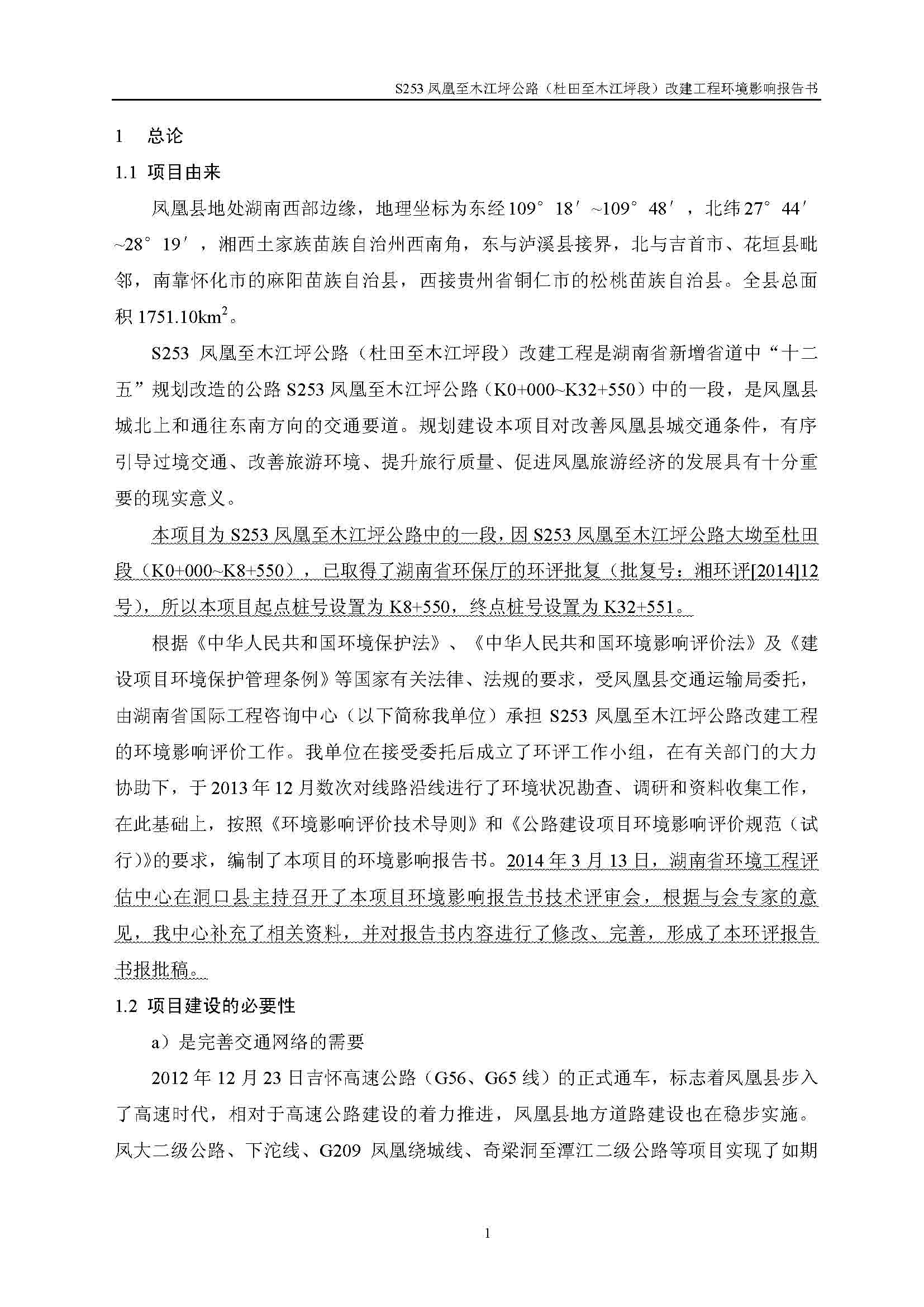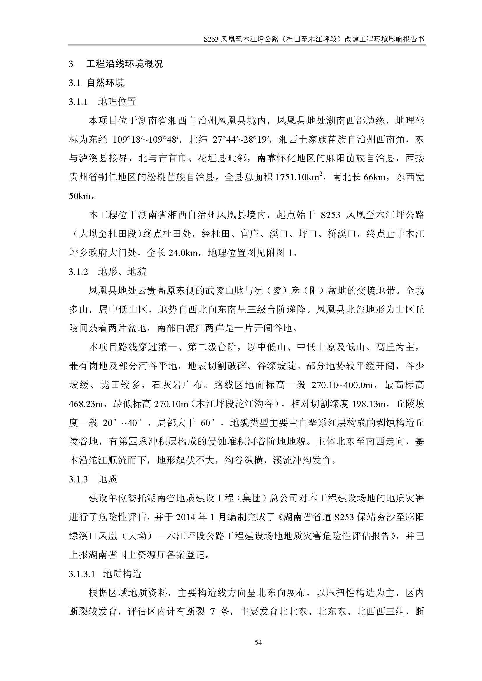 S253鳳凰至木江坪公路改建工程環(huán)境影響報(bào)告書