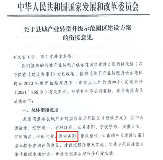 根據(jù)《國家發(fā)展改革委 科學(xué)技術(shù)部 工業(yè)和信息化部 自然資源部關(guān)于產(chǎn)業(yè)轉(zhuǎn)型升級示范區(qū)建設(shè)2020年度評估結(jié)果及下一步重點工作的通知》(發(fā)改振興〔2021〕866號),瀏陽經(jīng)開區(qū)成功入選國家級縣城產(chǎn)業(yè)轉(zhuǎn)型升級示范園區(qū)。《方案》被省發(fā)展改革委、省科技廳、省工信廳和省自然資源廳聯(lián)合印發(fā)。